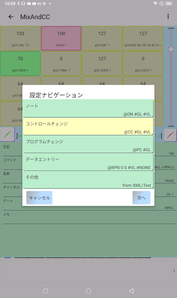 コントロールチェンジの一覧から選択します。