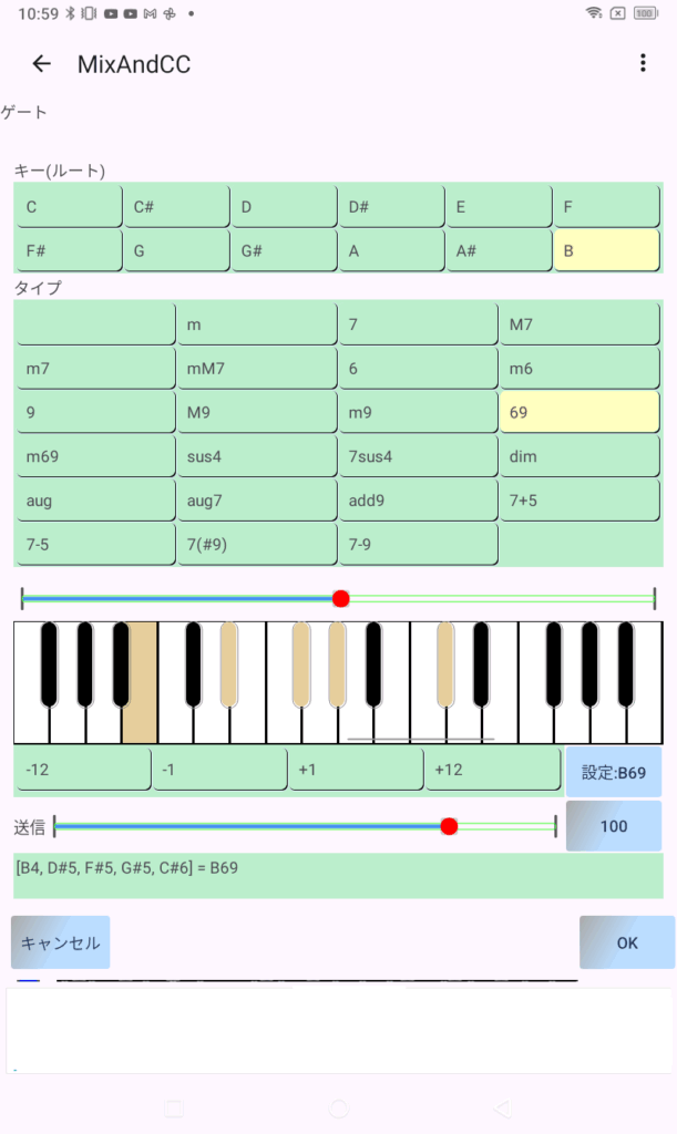 タッチパネルか、MIDIインのキーボードから設定できます。コードを検出します。