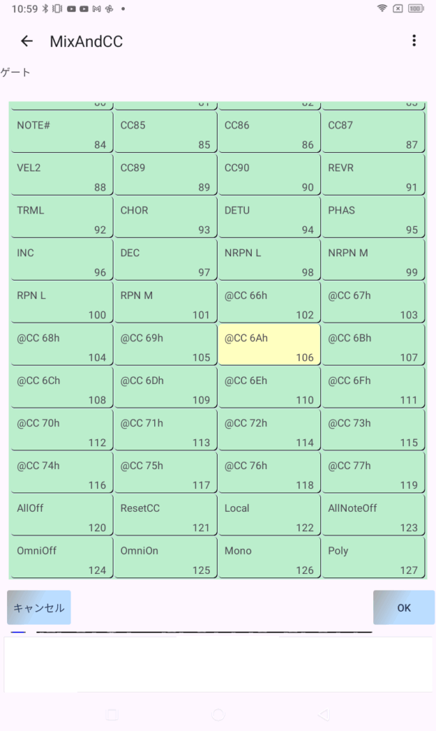 対応するMIDIメッセージは、CCだけではありません。下記のMIDIメッセージに対応しています。