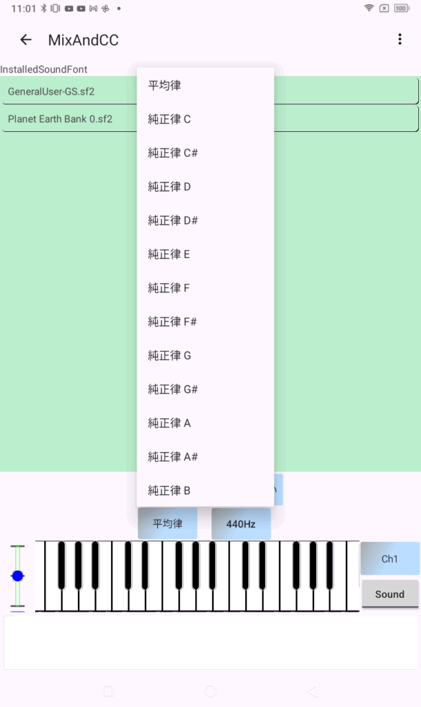 ・フォント選択(フォントのロード、アンロード、何も設定しないと「GeneralUserGS」)