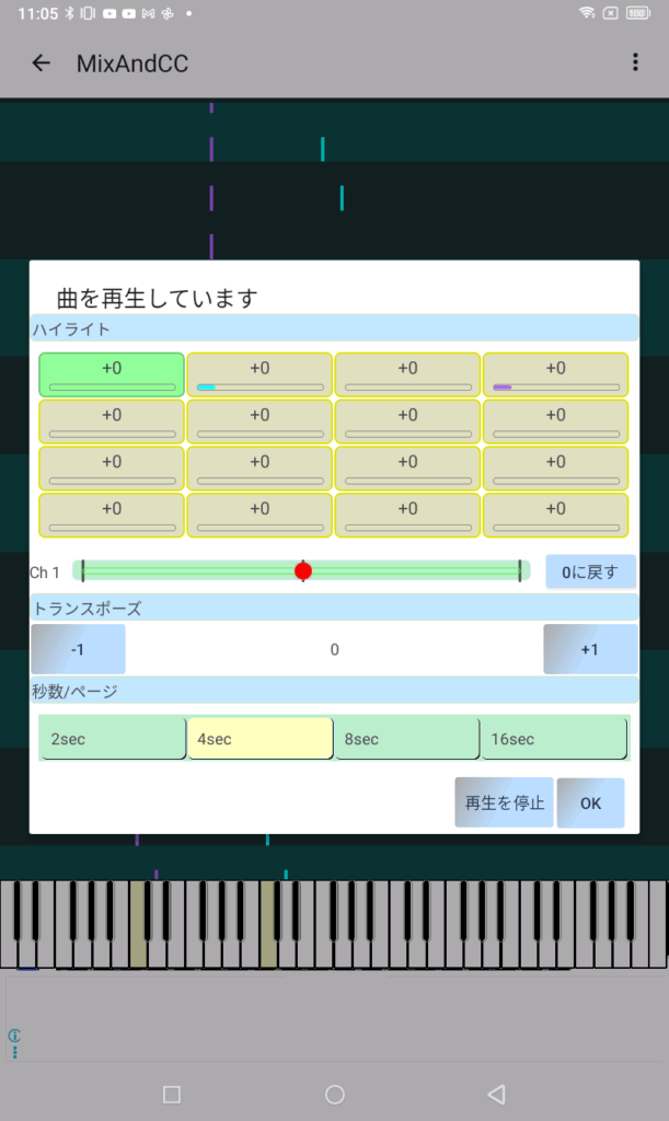 また、SoundFontのエンジンはバッテリーをそこそこ使いますので、60秒信号のやり取りがない場合、音声合成を停止します。再び信号がきた場合、1秒ほどかけて立ち上げなおしています。パソコンではなく、タブレットですから、こうしています。